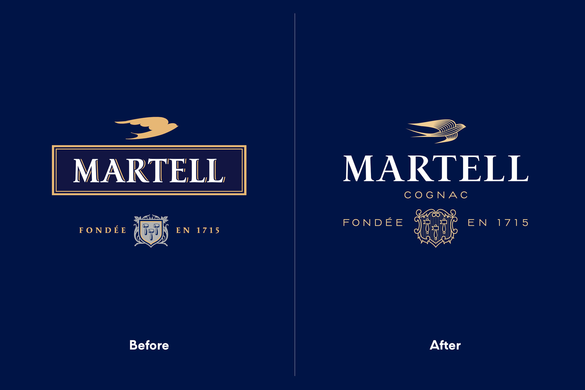 When redesigning the identity of Martell, we explored the luxury cognac house’s archives, bringing back details from 300 years of history. We drew a new swift, revived a timeless shield, created exclusive typefaces in collaboration with Production Type, and set the global corporate identity brand guidelines.